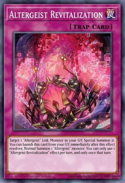 Target 1 "Altergeist" Link Monster in your GY; Special Summon it. You can banish this card from your GY; immediately after this effect resolves, Normal Summon 1 "Altergeist" monster. You can only use 1 "Altergeist Revitalization" effect per turn, and only once that turn.