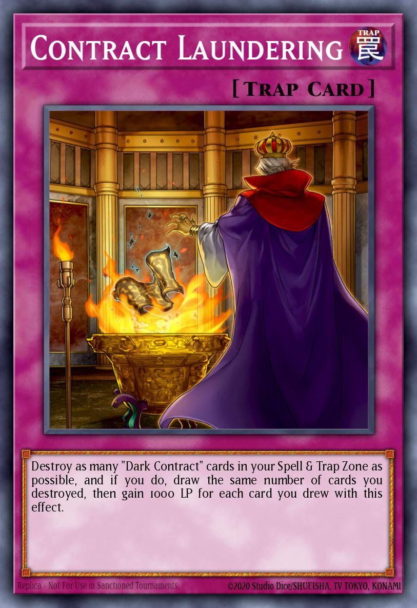 Phá hủy càng nhiều "Dark Contract" trong Vùng bài Phép & Bẫy của bạn nhất có thể, và nếu bạn làm điều đó, hãy rút cùng số lá bài bạn đã phá hủy, sau đó nhận được 1000 LP cho mỗi lá bài bạn đã rút với hiệu ứng này.