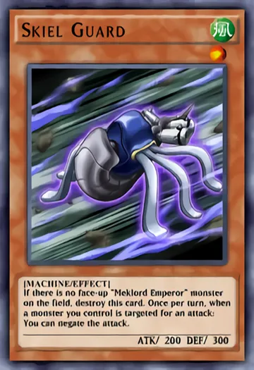 Nếu không có quái thú "Meklord Emperor" ngửa trên sân, hãy phá hủy lá bài này. Một lần mỗi lượt, khi quái thú bạn điều khiển bị chọn mục tiêu tấn công: Bạn có thể vô hiệu hóa đòn tấn công.